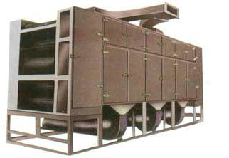 概述 将所要处理的物料通过适当的加料机构,如星型布料器、摆动带、粉碎机或造粒机,分布在输送带上,输送带通过一个或几个加热单元组成的通道,每个加热单元均配有空气加热和循环系统,每一个通道有一个或几个排湿系统,在输送带通过时,热空气从上往下或从下柱上通过输送带上的物料,从而使物料能均匀干燥。
